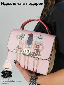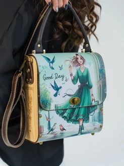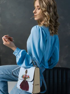 Сумка через плечо с деревянными вставками и принтом