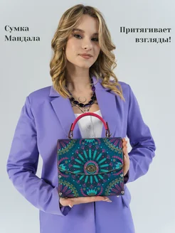 Сумка Мандала кросс-боди с деревянными вставками и принтом