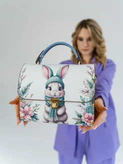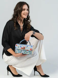 Сумка-клатч с деревянными вставками и принтом