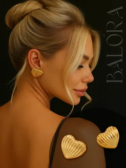 Серьги бижутерия сердечки рельефные золотистые