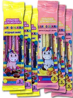 Трубочки для молока Единорожки 10 вкусов 30 шт