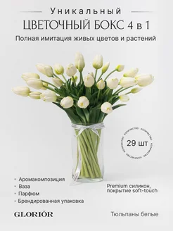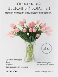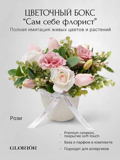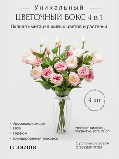 Искусственные цветы, подарочный набор с вазой и парфюмом