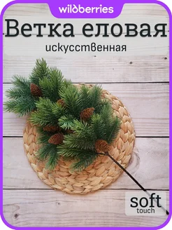 Ветка еловая хвойная с шишками искусственная 1 шт