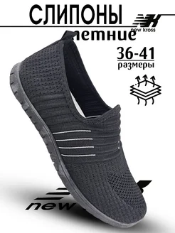 Слипоны женские летние дышащие текстиль сеточка без шнурков