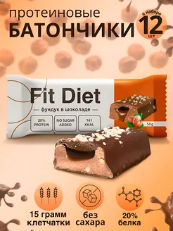 Протеиновые батончики без сахара фундук в глазури 12 шт 50 г