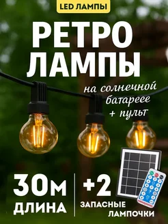 Гирлянда уличная ретро лампы на солнечной батарее