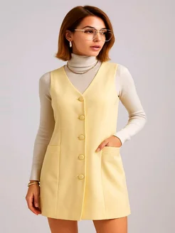 Платье-жилет без рукавов с карманами и пуговицами