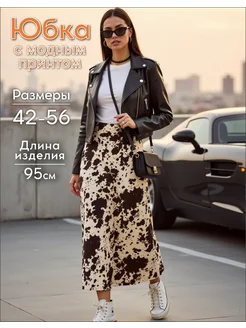 Юбка атласная длинная коровий принт