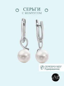 Серьги серебряные 925 пробы с натуральным жемчугом