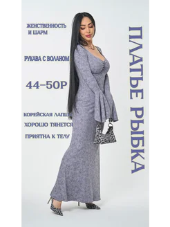 Платье рыбка лапша рукава клеш длинное вечернее нарядное