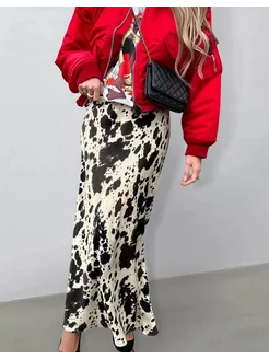 Юбка атласная макси с коровьем принтом