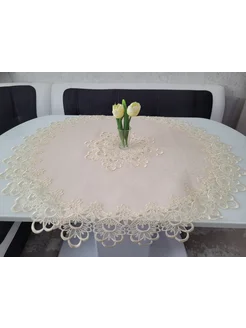 Скатерть на журнальный столик круглая с кружевом 85 см