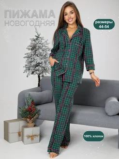 Пижама со штанами и рубашкой в клетку хлопок новогодняя