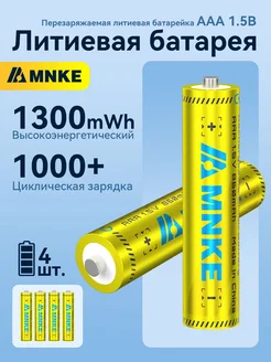 Аккумуляторная литиевая батарея AAA,1300мВт ч, 4 элемента