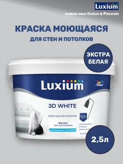 Краска для стен и потолков Dulux 3D White 2,5л супер белая