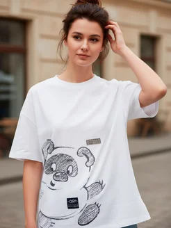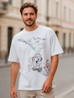 Футболка оверсайз белая с принтом Бременских музыкантов