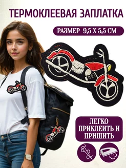 Термоаппликация мотоцикл на одежду фигурная 9,5 х 5,5см