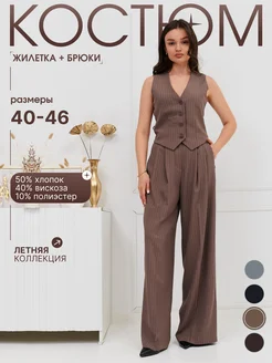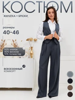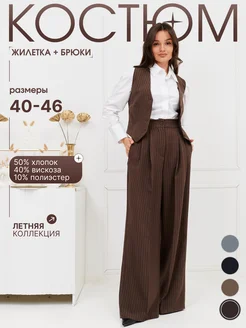 Костюм женский с брюками и жилеткой в полоску