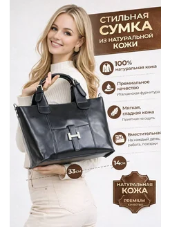 Сумка объемная из натуральной кожи 34 х 30 х 13 см
