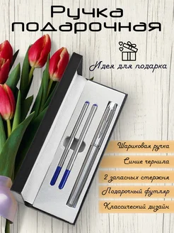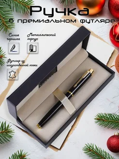 Ручка подарочная в футляре из экокожи с синими чернилами