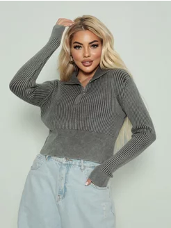 Свитер укороченный с горлом на молнии
