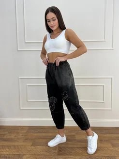 Джинсы бананы широкие укороченные в стиле бохо