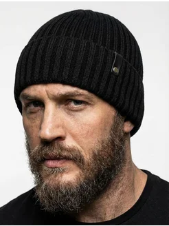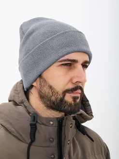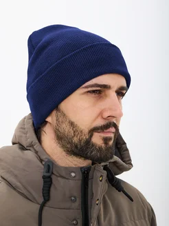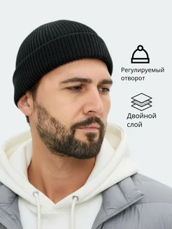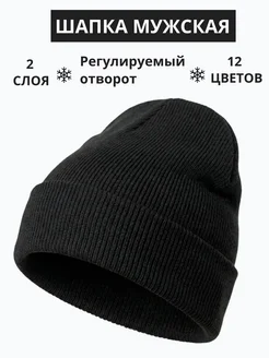 Шапка зимняя - весенняя вязаная теплая с отворотом