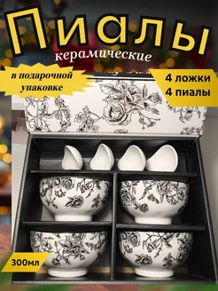 Пиалы из керамики с ложками 4 шт