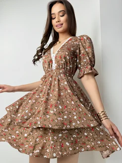 Платье летное в цветочек с декольте
