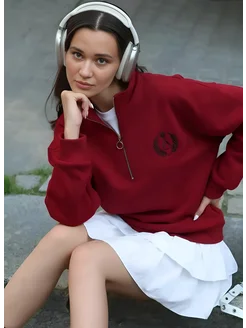 Свитшот оверсайз полузамок с воротником на молнии без начеса