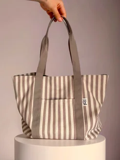 Летняя пляжная сумка в бежевую полоску для йоги