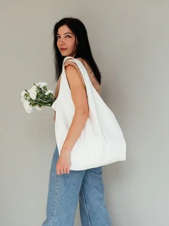 Белая сумка шоппер мешок кожаная