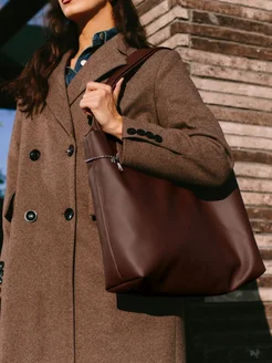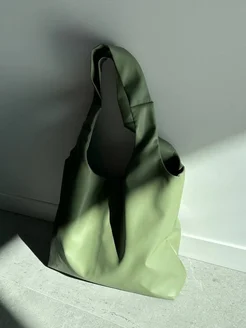 Оливковая кожаная большая сумка шоппер мешок хобо