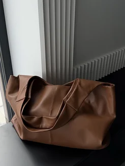 Сумка шоппер мешок коричневая кожаная