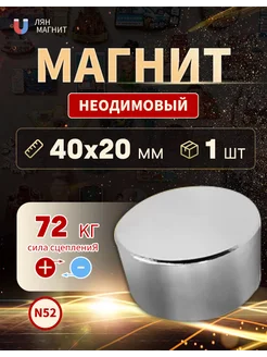 Неодимовый сильный магнит диск 40х20 мм 1 шт