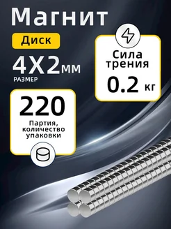 Неодимовый сильный магнит диск 4х2 мм 220 шт