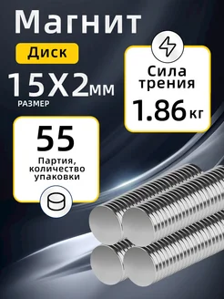 Неодимовый сильный магнит диск 15х2 мм 55 шт