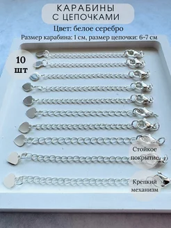 Фурнитура для бижутерии застежка карабин с цепочкой 10 шт