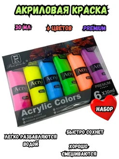 Набор Акриловых красок неоновые 6 цветов 30 мл