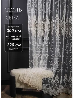 Тюль сетка 300х220 см с вышивкой на шторной ленте