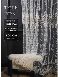 Тюль сетка 700х250 см с вышивкой на шторной ленте