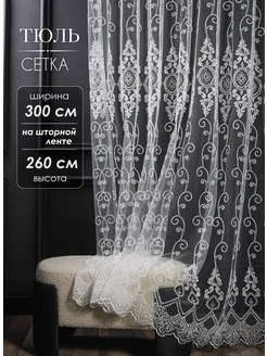 Тюль сетка 300х260 см с вышивкой на шторной ленте