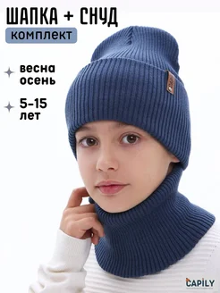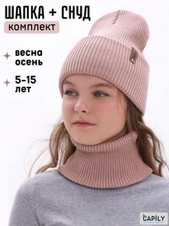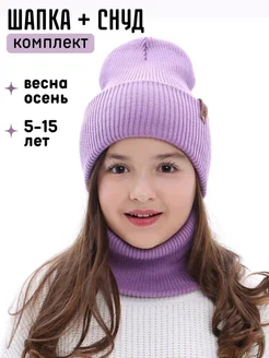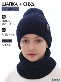 Шапка тыковка и снуд с флисом комплект зимний теплый вязаный