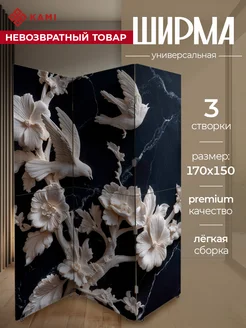 Ширма перегородка 3D Птицы и цветы шинуазри 170х150 см
