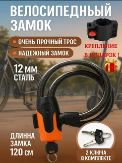 Замок для велосипеда противоугонный тросовый с ключом