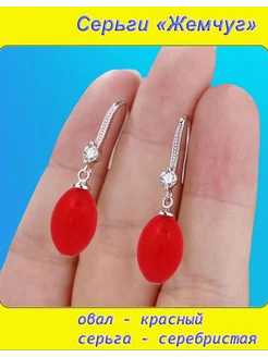Серьги Жемчуг овал красный серебристые
