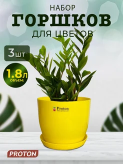 Горшок для цветов с поддоном, объем 1.8л в наборе 3 шт