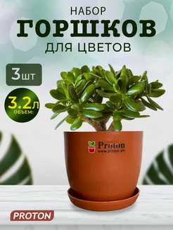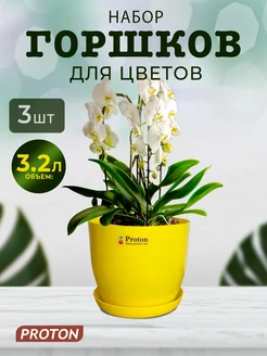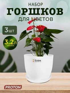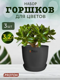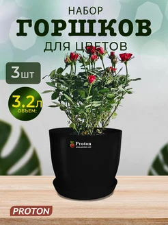 Горшок для цветов с поддоном, объем 3.2л в наборе 3 шт