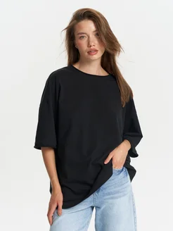 Футболка оверсайз черная, футер велюр, плотная ткань