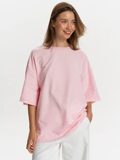 Футболка оверсайз розовая, футер велюр, плотная ткань